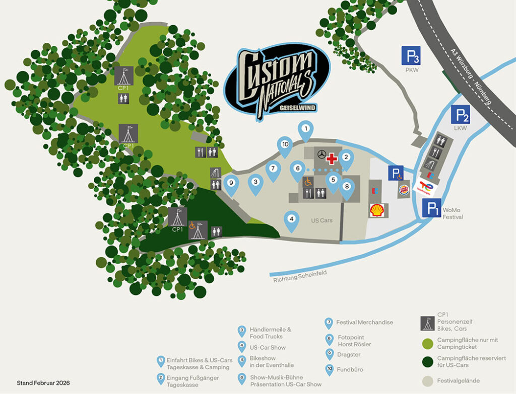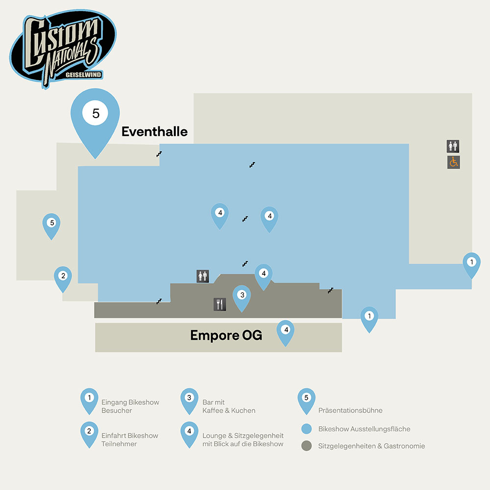 Bei den Custom Nationals soll jeder eine gute und stressfreie Zeit haben, orientiert euch also bitte schon im Vorfeld, was sich wo befindet.
